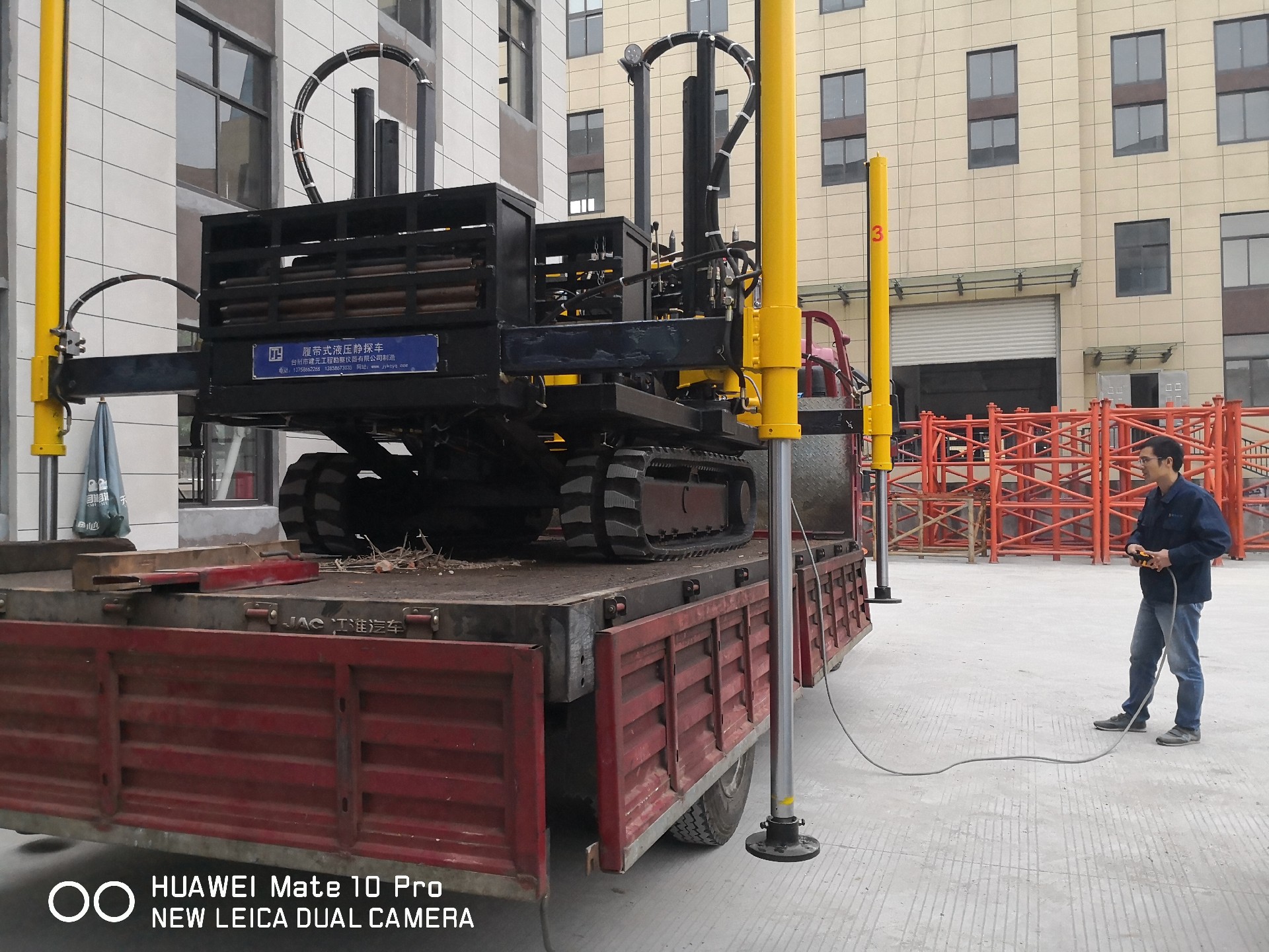 本車自動下錨和貫入油缸為中置式,貫入油缸分標(biāo)準(zhǔn)和快速二種模式選擇。徹底淘汰老式雙油缸結(jié)構(gòu)并采用液壓卡裝置,可卡φ25~φ65的各規(guī)格探桿和套管。